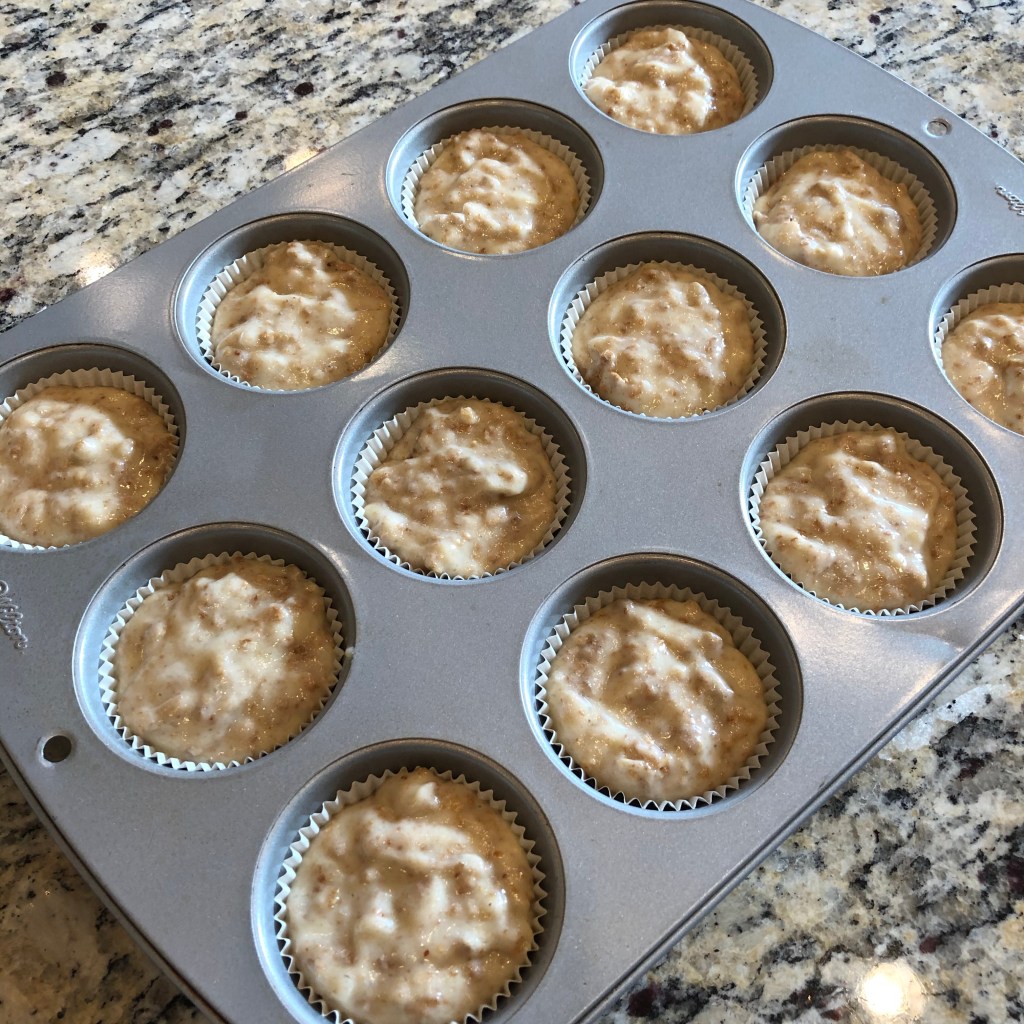 | 5. Fill muffin cups with about 1/4 cup of batter. |