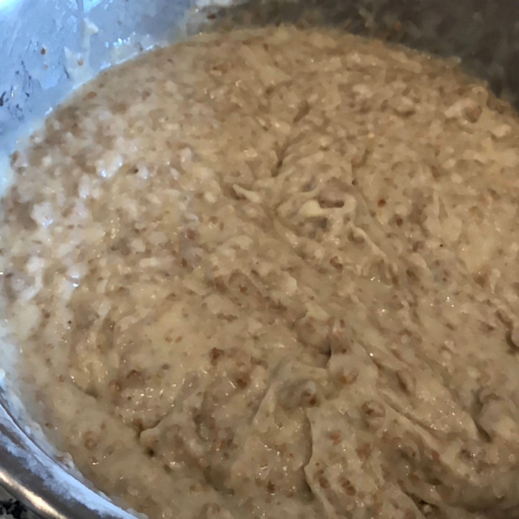 | 3. Beat eggs slightly in a medium size bowl, then add rest of wet ingredients. Mix well until oil is incorporated. |
