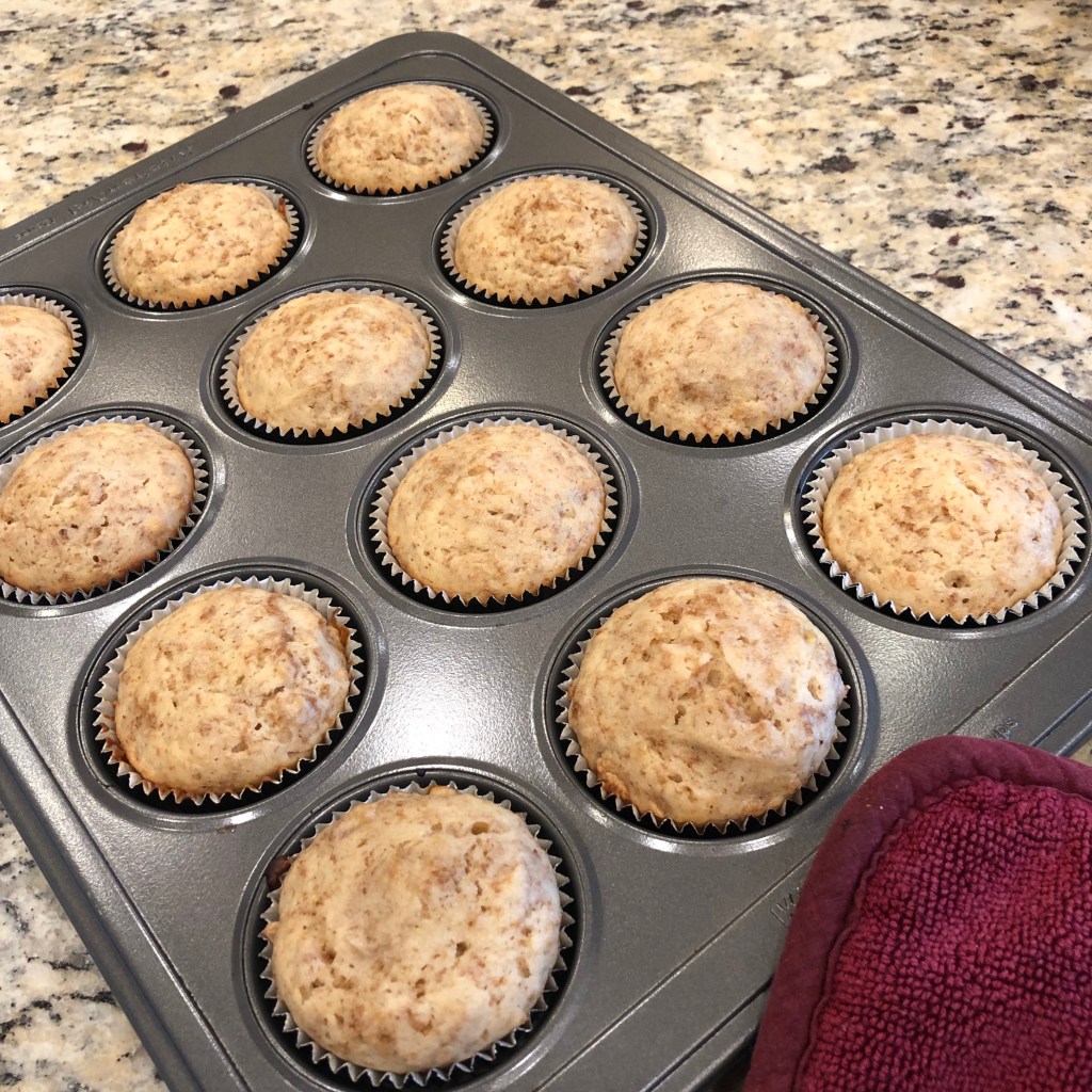 No need to get out the big stand mixer for these. They are made with a bowl and spoon. This recipe makes about 4 dozen muffins. Obviously, it can be halved if you want.
